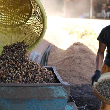This process is not as commonly used by our partners. Based on demand, only a certain amount of coffee is set aside for honey processing as it takes longer compared to the other main methods. Harvested coffee cherries are pulped but the bean retains a layer of mucilage. The bean and mucilage are fermented in a longer "drying" process. The mucilage layer eventually looks a bit like honey (hence the method name). After the beans finish fermenting and drying, the layer of dry mucilage is removed. The beans are then ready for assessment and storage. The roasted beans tend to have a balance of fruitiness and clarity that is somewhere between natural and full wash. Larger quantities can be produced if orders are placed before the next harvest season.